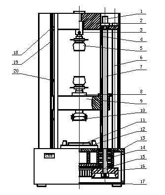 电子万能试验机主机由负荷机架、传动系统、夹持系统和位置保护装置等四部分组成。如图1-4。