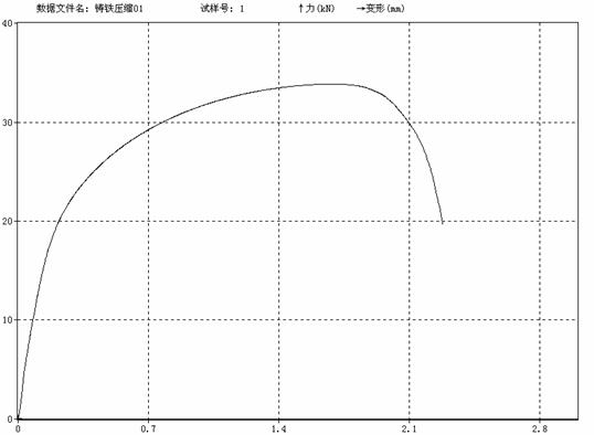 铸铁压缩图(见图1-10)与铸铁拉伸图相似,不过其抗压强度要比其抗拉强度大得多。